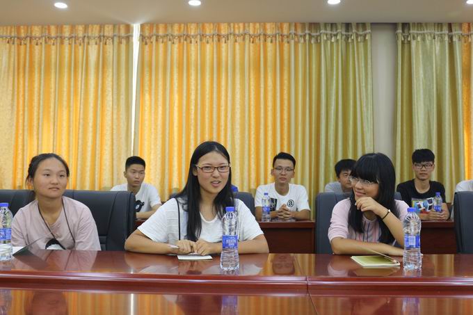 座谈会进行了两个多小时,新生代表踊跃发言,气氛轻松而热烈。李校长就不同话题与同学们深入交流,并分享了引人深思的小故事。李校长给新生提出四点建议:一是争取良好的开端,保持良好的心态和学习生活习惯。二是静心学习。要设计一个学习成长进程表,先完成一个个小目标,循序渐进并最终达成大目标。三是要有战胜困难的决心。生活总是不能完全如你所愿,要勇于战胜困难。四是多锻炼自己。要积极参加班级、院系、学校各级组织和社团的活动,培养策划和解决问题的能力。