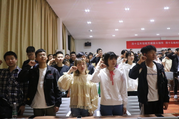 此次团日活动在庄严的国歌中拉开序幕,电信18303班叶华龙带领全体团员青年回顾了五四运动的背景。全体共青团员观看了微团课视频,重温了入团誓词。最后,整个团日活动在全体团员共唱团歌中结束。