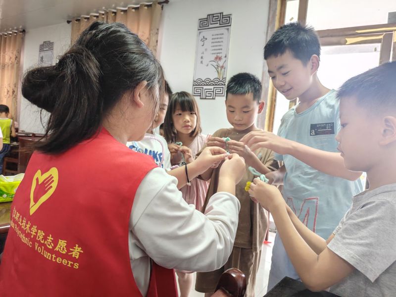 2024年暑假,蔡湖云来到湖北省黄冈市浠水县团陂镇蔡井村,参与“夏日学伴之旅”志愿活动,负责教授音乐和手工课程。第一天,孩子们在她的带领下唱起《小星星》,稚嫩的童声在简陋的教室里回荡,交织成一幅温暖的画面。第二天的手工课上,她手把手教孩子们折纸船,看着孩子们兴奋地高举作品,脸上洋溢着纯真的笑容,她深刻体会到,教育的意义不仅仅在于知识的传授,更是一种心灵的滋养与成长。