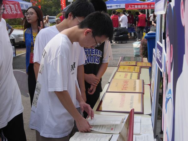 展台前,两位新生久久驻足***2503班的王同学在世界技能大赛金牌前轻声自语:“原来顶尖高手离我并不遥远,明年赛场必有我的名字。”而信息工程2501班的张同学在翻阅学长的笔记时感叹:“这些字迹和电路图就像打印出来一样工整!学长们对专业的敬畏,比奖牌更震撼我。”榜样的力量在此刻,悄然点燃了新生的心。