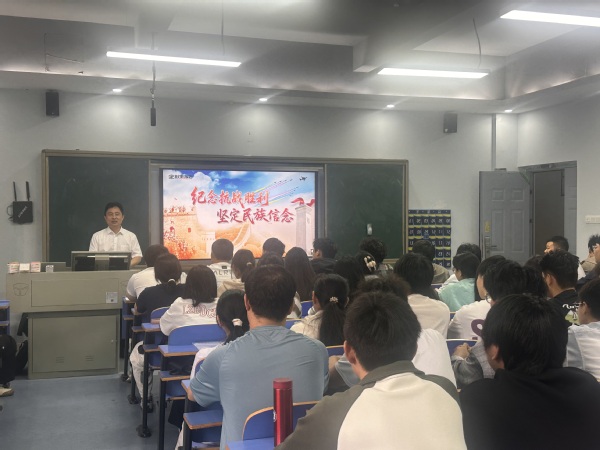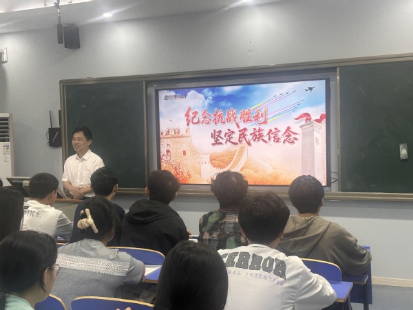 (通讯员:刘晶)9月24日,武汉职业技术大学党委副书记胡象斌走进光电与信息工程学院,为物联网 25301、物联网 25302 班的 72 名学生带来了一堂主题为 “纪念抗战胜利坚定民族信念” 的形势与政策课。胡象斌以详实的历史资料、深刻的精神解读,带领同学们重温艰苦卓绝的抗战岁月,引导青年学子从历史中汲取力量,坚定理想信念。