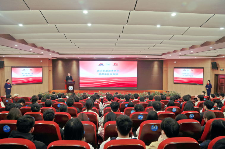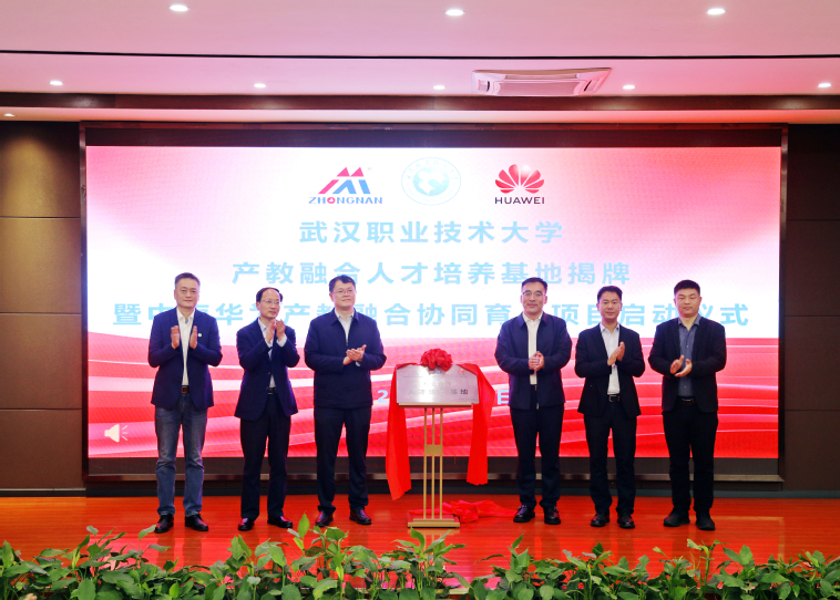 在全场嘉宾与师生的见证下,校企三方领导共同为武汉职业技术大学产教融合人才培养基地揭牌,标志着学校与中南人才集团、华为机器有限公司的产教融合合作迈入实质性落地阶段,中南华为产教融合协同育人项目正式启动。